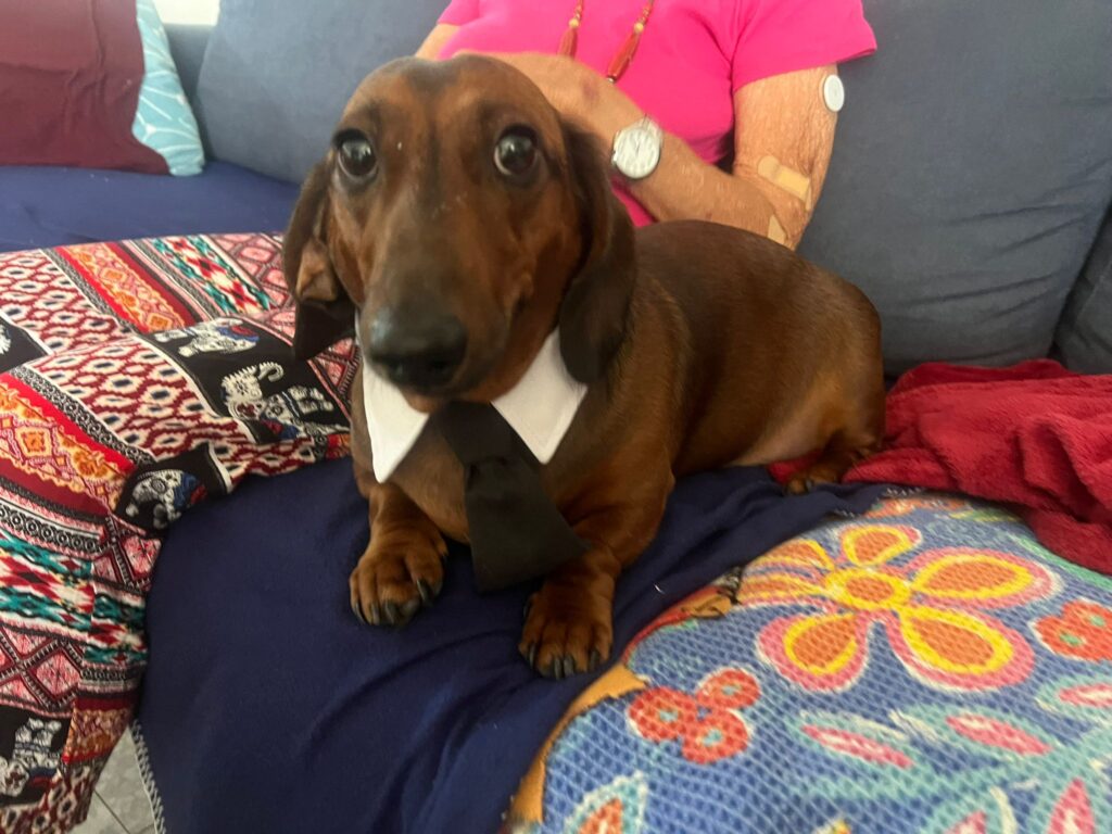 האילוף של טופי הוא כלב תחש גזעי (דאקסהונד)